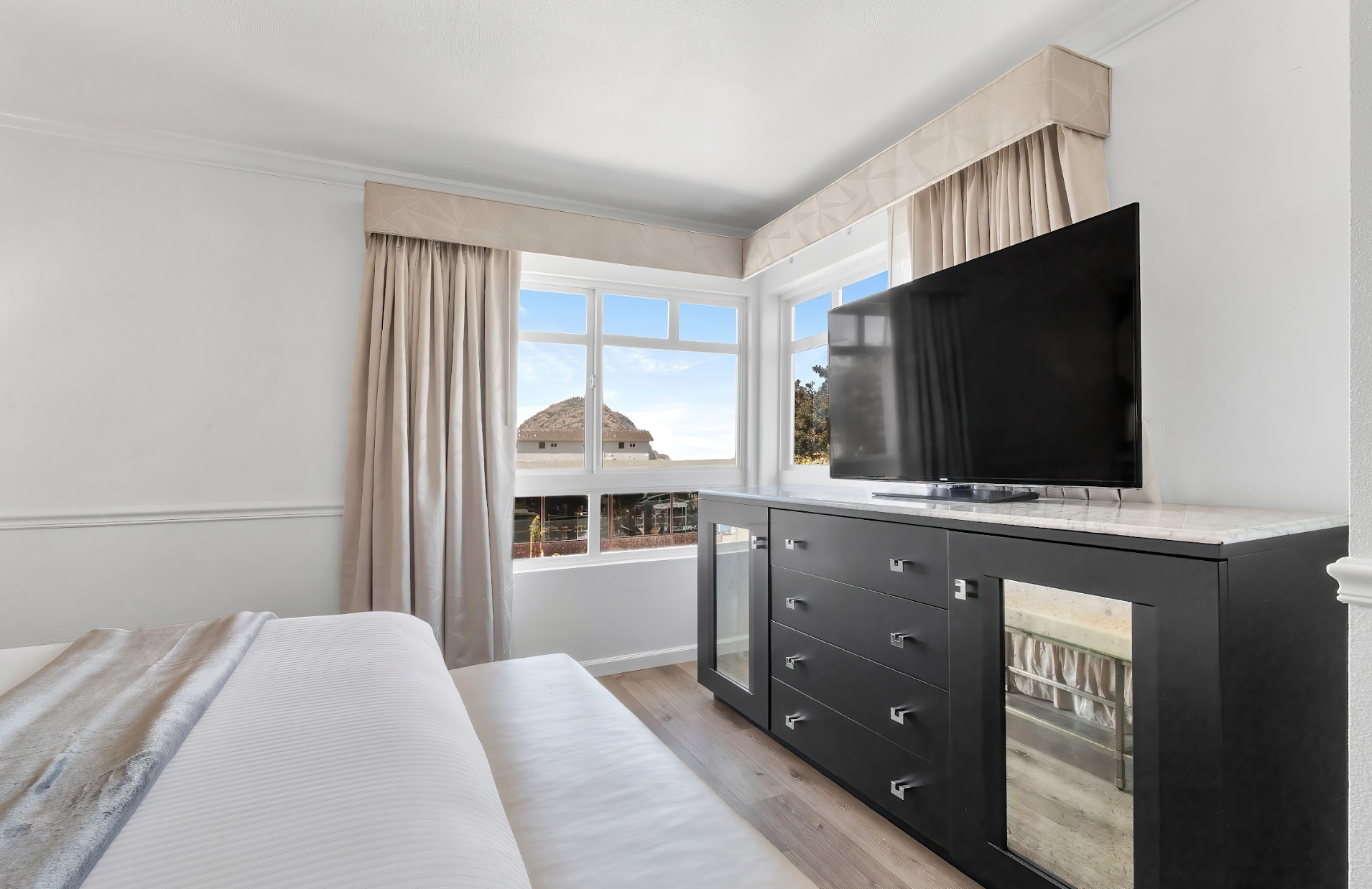 Our King Tower Rooms are bright, spacious, and provide an amazing view of Morro Rock and the surrounding coastal area. Featuring a TV, fireplace, jacuzzi (select rooms), and other amenities, it has everything you need for a comfortable stay.